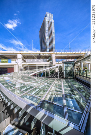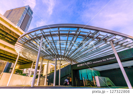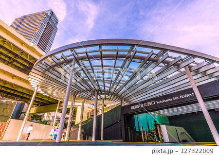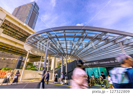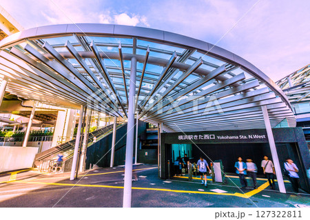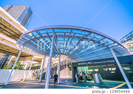 日本の横浜都市景観 6月。整備された横浜駅きた西口。大屋根が印象的…