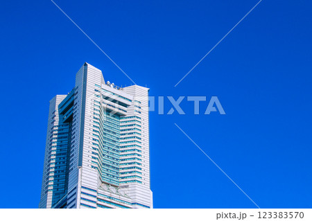 日本の横浜都市景観 輝く時代へ…横浜ランドマークタワーや太陽光を反射する横浜エアキャビン。希望の光