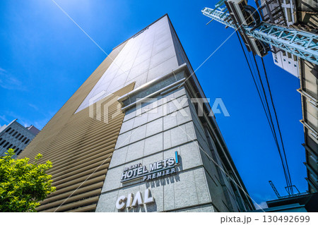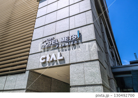 日本の横浜都市景観 桜木町駅新南口から桜木町駅前複合ビル・JR東日本ホテルメッツ横浜桜木町などを望む