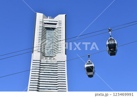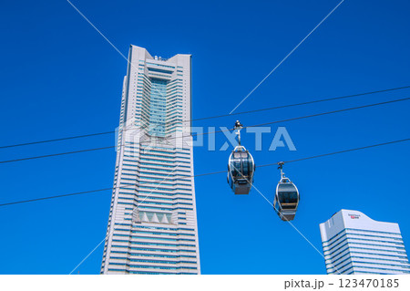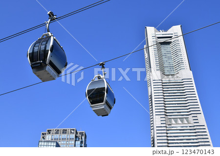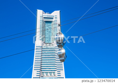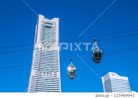 日本の横浜都市景観 YOKOHAMA AIR CABIN桜木町駅やヒューリックみなとみらいなどを望む