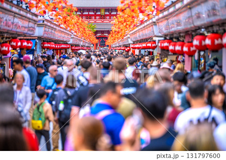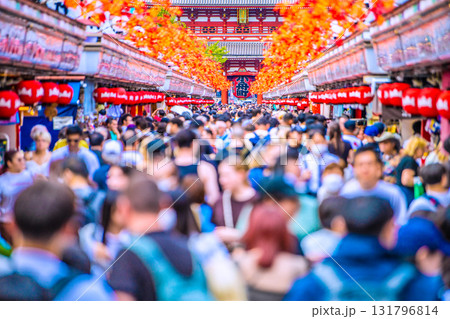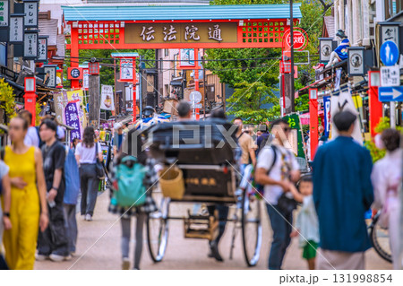 日本の東京都市景観 外国人観光客らで賑わう伝法院通りや仲見世通りなどを望む。危険運転自転車が横行…
