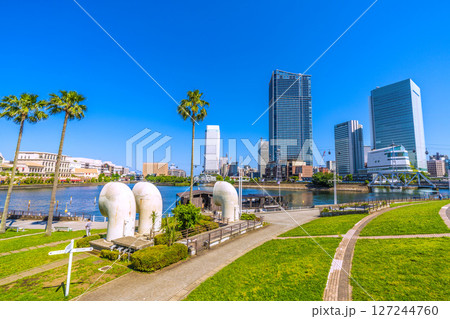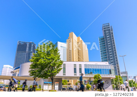 日本の横浜都市景観 桜木町駅前複合ビル・JR東日本ホテルメッツ横浜桜木町などを望む