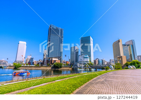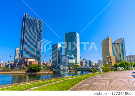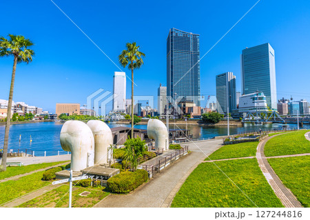 日本の東京都市景観 桜木町駅前。横浜市役所やヨコハマエアキャビン、汽車道、港一号橋梁などを望む