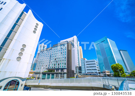 日本の横浜都市景観 桜木町駅前複合ビル・JR東日本ホテルメッツ横浜桜木町などを望む