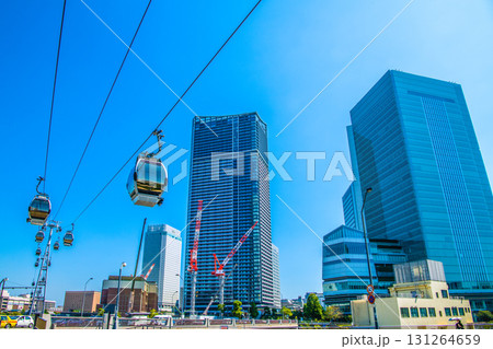 日本の横浜都市景観 YOKOHAMA AIR CABIN運河パーク駅などを望む