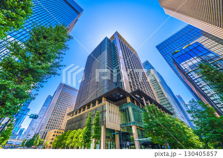 日本の東京都市景観新風景。鉄鋼ビルディングや大手町駅、ガラスに映る大成大手町ビル…。左は常盤橋タワー