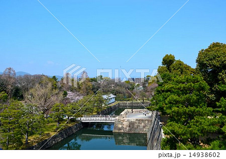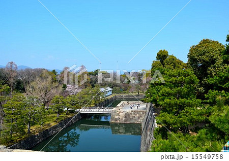 【京都】春の二条城 天守閣跡から見下ろす内堀と木々