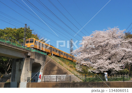 多摩川線(西武)と桜の花