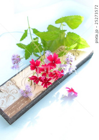 赤いバーベナと青色フジバカマ