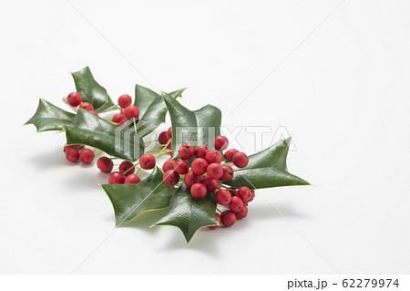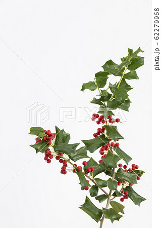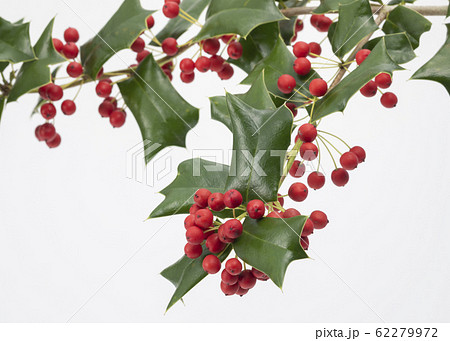 鮮やかな赤と緑の西洋柊 線画なし