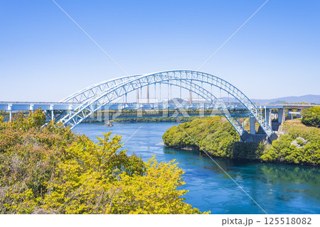 新西海橋と青空と新緑が広がる景色