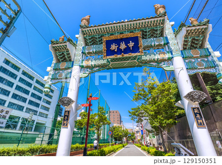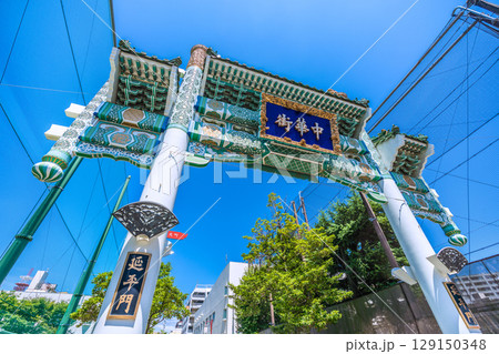 日本の横浜都市景観 横浜中華街を望む。延平門の「中華街」
