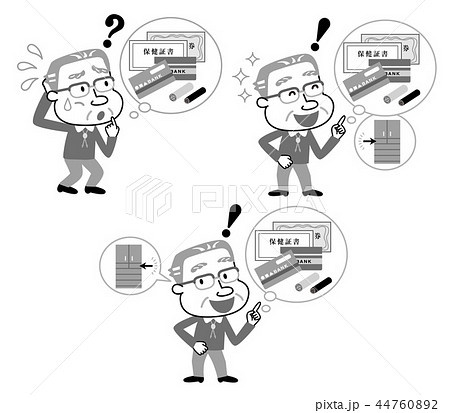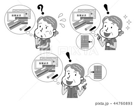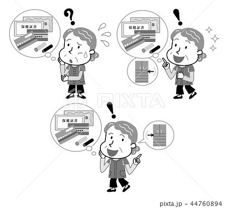 高齢者 通帳 証書 有価証券 モノクロ イラスト