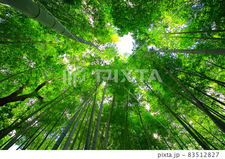 日本庭園 下から見上げた竹林に射す木漏れ日の風景
