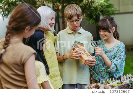 Insect hotel as educational tool for children in outdoor sustainable educational class.