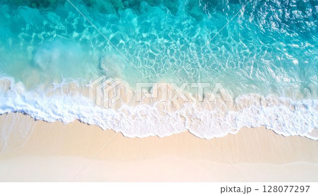 上から見た南国の青い海 白い砂浜に打ち寄せる波