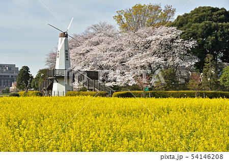 「埼玉県」見晴公園の風車と菜の花畑 さいたま市