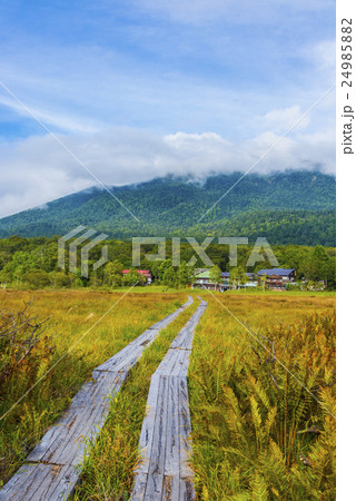 秋の尾瀬(福島県 檜枝岐村)の見晴地区にある山小屋(弥四郎小屋)