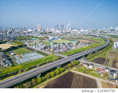 「埼玉県」ドローンで見沼田んぼ春の風景を空撮