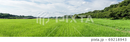 見沼田んぼ 夏空と青々とした田んぼ 夏