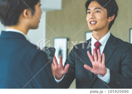 気まずそうな男性と調べている女性