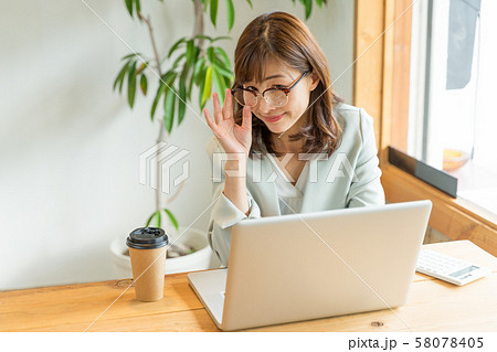 眼鏡越しに睨んでるビジネスウーマン