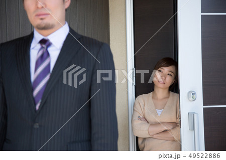 玄関で夫を送り出す妻