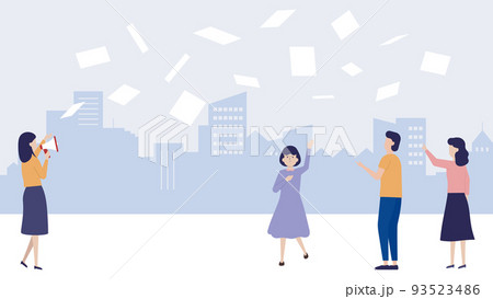 ビラ配り・チラシ配り・宣伝・広告・サンプリング・ポスティングのイラスト素材