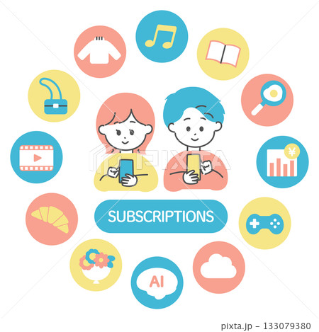 さまざまなサブスクリプションを利用する若い男女 サブスク アプリ サービス ユーザー