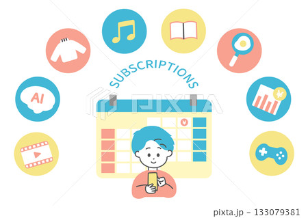 さまざまなサブスクリプションを利用する若い男性 サブスク アプリ サービス ユーザー