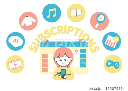 さまざまなサブスクリプションを利用する若い女性 サブスク アプリ サービス ユーザー