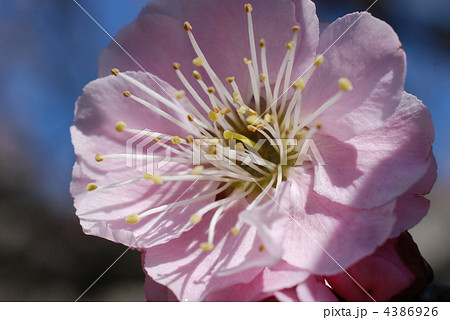 4月に咲いた淡いピンク色の梅の花「見驚(ケンキョウ)」