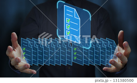 ドキュメントマネジメントとコンプライアンス。承認済みの法務文書の保管。チェックリスト付きの文書アイコ
