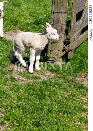 White lamb in the pasture