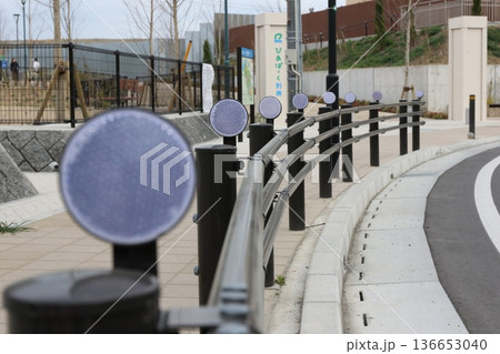 夢舞大橋の歩道入口に設置された車両進入防止用のポールと広々とした通路(インフラ・交通安全・舞洲)