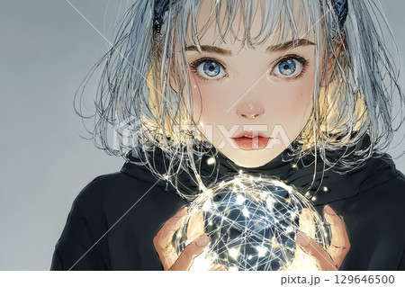 サイバーセキュリティAI少女が光のネットワークを守るポーズ