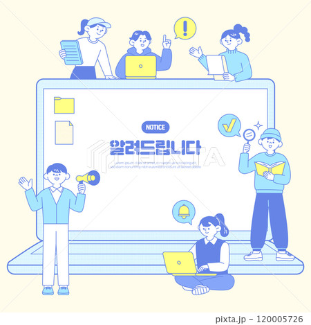 Illustration vector with people around the laptop