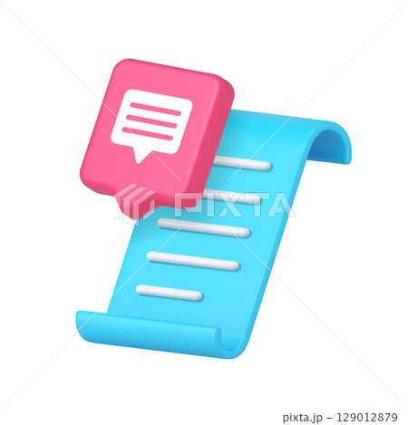 Blue Paper Scroll With Speech Bubble 3D Realistic Icon Representing Messaging And Digital Communication