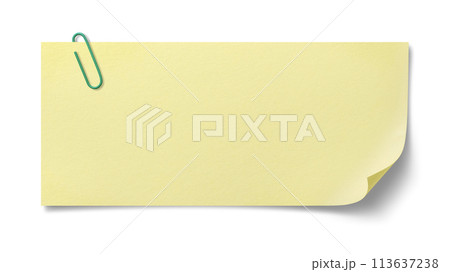 クリップが留められた黄色いメモ用紙のテクスチャー