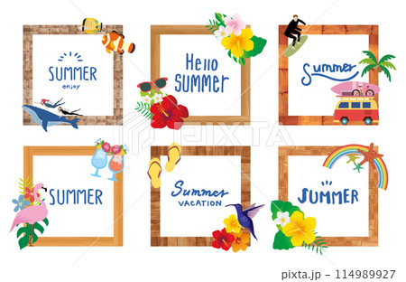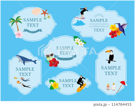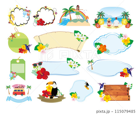 トロピカル素材 常夏の植物・ウミガメのマークなど