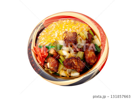 お持ち帰りの弁当、焼き鳥親子丼【白背景・切り抜き】