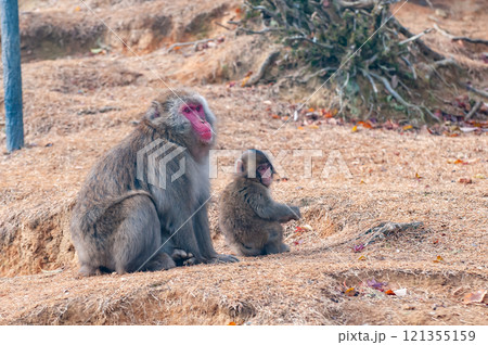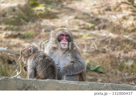 毛繕いする親子猿 嵐山モンキーパークいわたやま