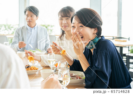 ホームパーティー カジュアルパーティー 食卓を囲むグループ イメージ素材