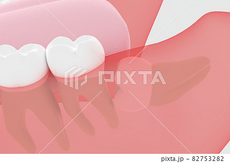 歯茎に埋まっている親知らずの3Dレンダリング