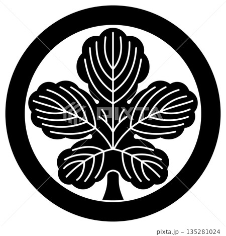 丸に梶の葉といいます。梶正道、梶川忠助、有賀貞重、大木親吉、神忠次の家紋です。