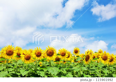 【花素材】山中湖村花の都公園にあるひまわりと青空【山梨県】