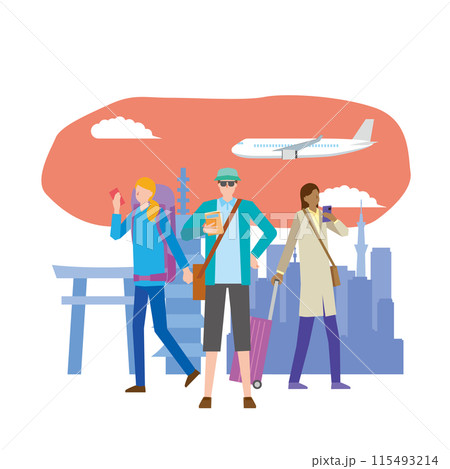 笑顔のインバウンド マスクなしVer 日本の観光名所を巡るツアーに参加する訪日外国人