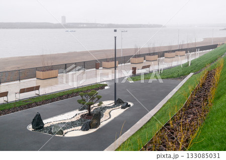 the gardens along the Baku seaside National park in Baku, Azerbaijan