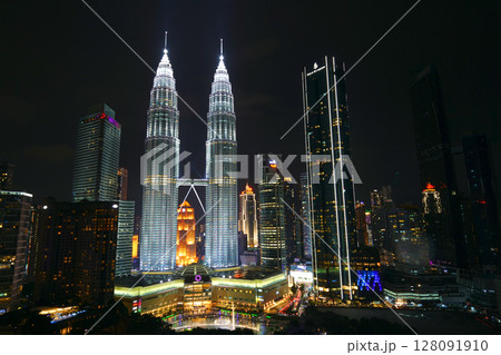 ペトロナスツインタワーとKLCC公園、クアラルンプール、マレーシア