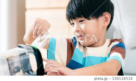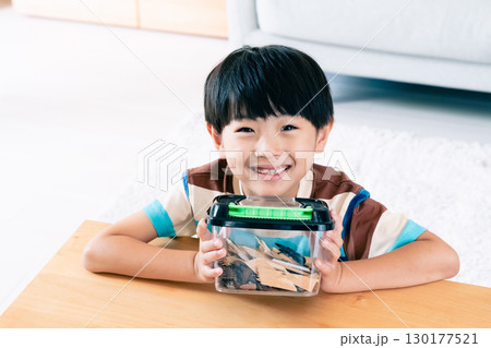 カブトムシを飼う6歳の男の子